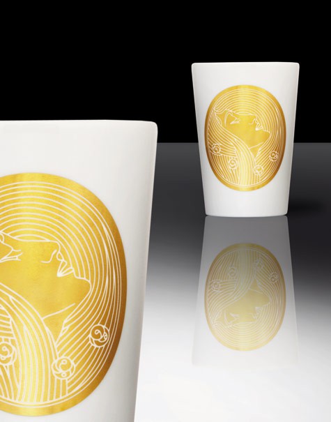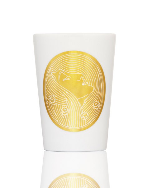 Series of 6 golden patterned porcelain mugs inspired by the facades of the most famous Viennese Art Nouveau buildings.