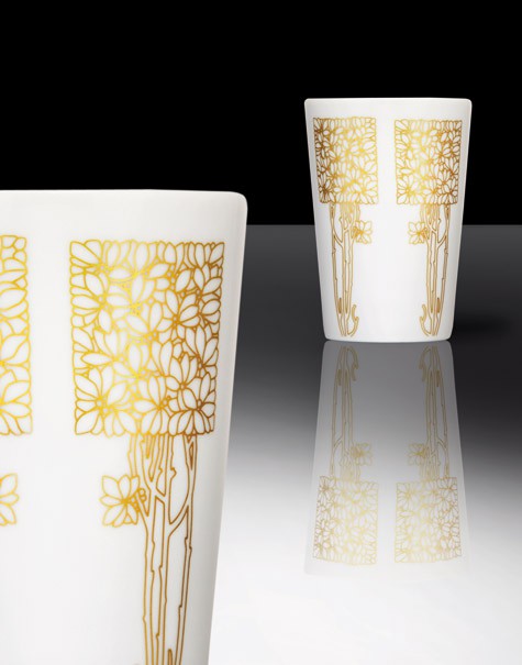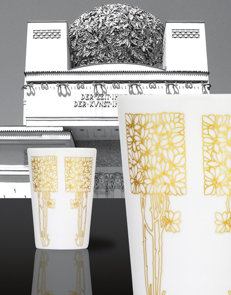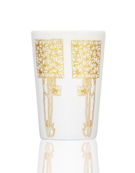 Series of 6 golden patterned porcelain mugs inspired by the facades of the most famous Viennese Art Nouveau buildings.