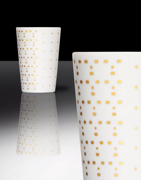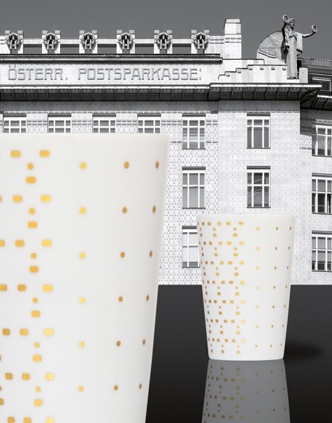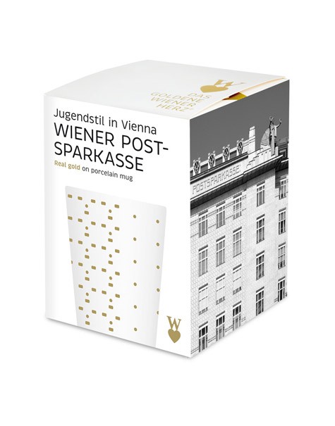Series of 6 golden patterned porcelain mugs inspired by the facades of the most famous Viennese Art Nouveau buildings.