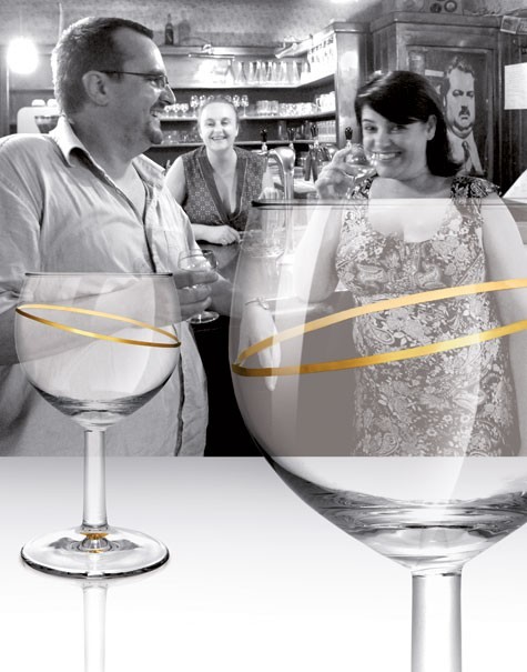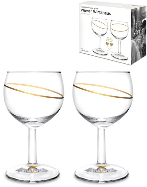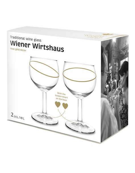 The ‘Ballon’ – here decorated with a tipsy gold band and a golden heart – was the traditional wine glass in the Viennese ‘Wirtshaus’. The ‘Wirtshaus’ is not only a tap room but also a restaurant with traditional cuisine, and has for centuries been a meeting point for people from all walks of life.